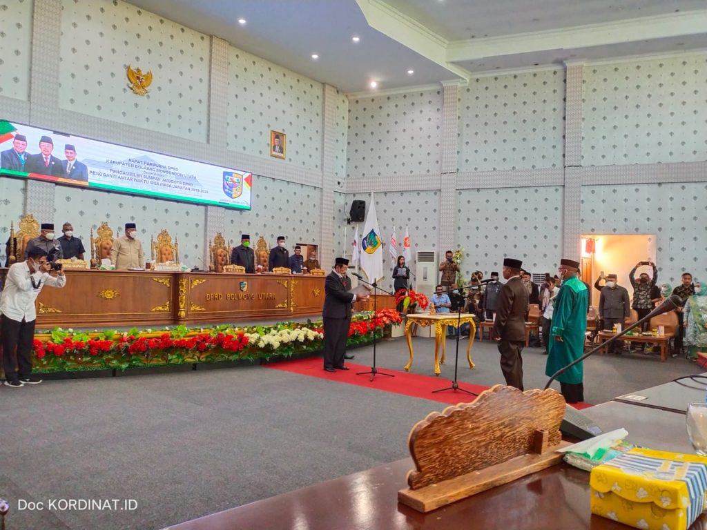 KORDINAT.ID – Dewan Perwakilan Rakyat Daerah (DPRD) Kabupaten Bolaang Mongondow Utara (Bolmut) menggelar Paripurna dalam rangka pengambilan sumpah anggota DPRD pengganti antar waktu (PAW) Anggota Legislatif (Aleg) dari partai persatuan pembangunan (PPP) atas nama Lepi Nani, Senin (31/01/2022).