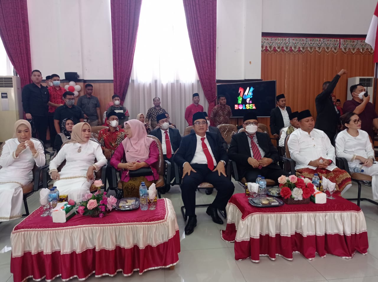 Turut hadir Pj. Bupati Bolmong Limi Mokodompit, Pimpinan DPRD se-BMR, pimpinan instansi vertikal, unsur Forkopimda Bolsel, Sekda M. Arvan Ohy bersama para pimpinan perangkat daerah, Ketua TP-PKK Ny. Selpian Kamaru-Manoppo bersama jajaran, para Camat, Sangadi, serta ASN dan undangan lainnya.