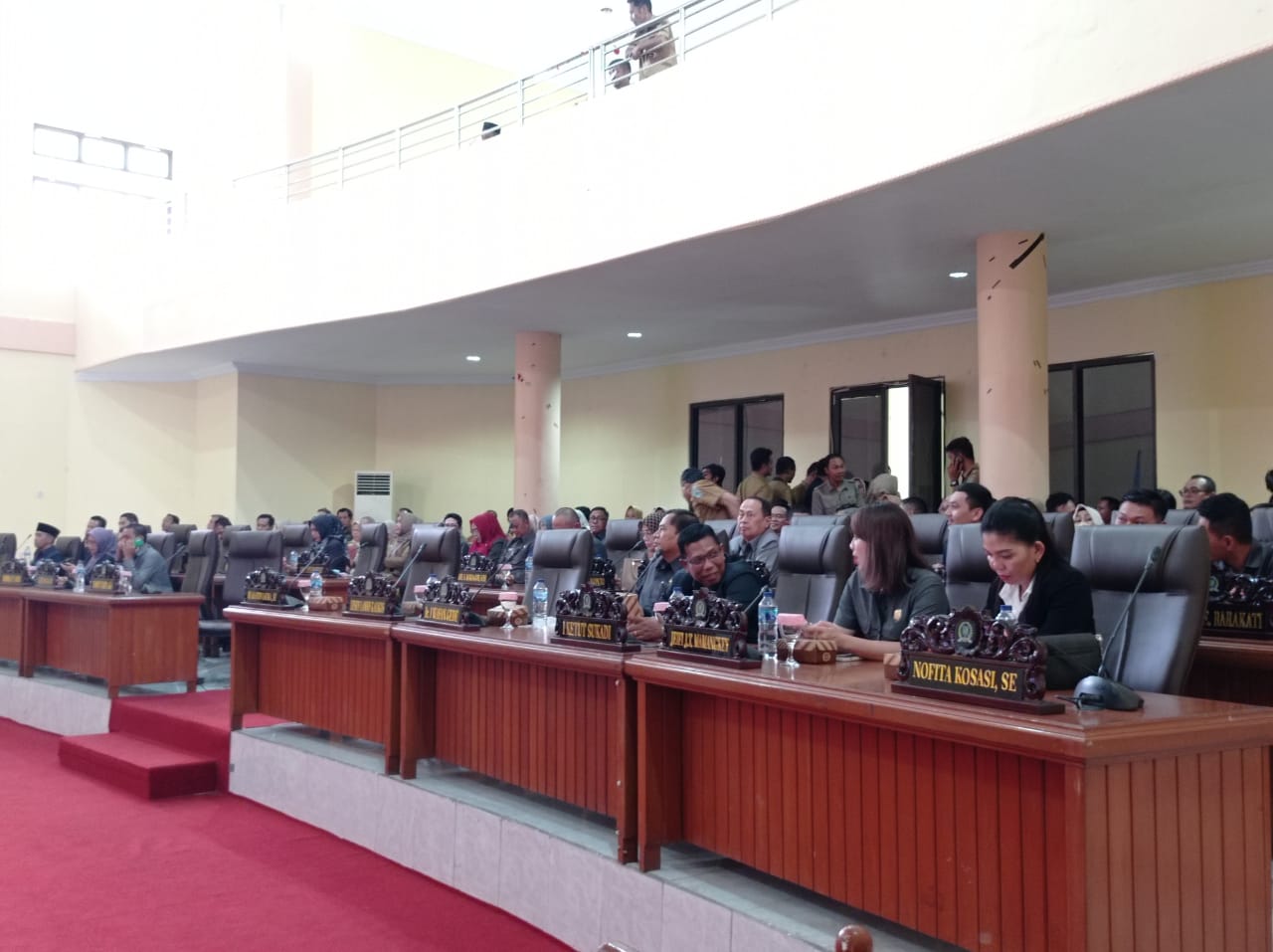 Rapat paripurna di Pimpin Ketuad DPRD Welty Komaling di dampingi Wakil Ketua dan dihadiri langsung Penjabat Bupati Limi Mokodompit, berlangsung di Gedung DPRD Bolmong.