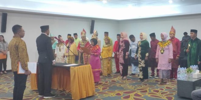 Proses pelantikan dipimpin langsung oleh Ketua Badan Pengawas Pemilu (Bawaslu) Bolsel Wira Bidjuni, bertempat di Hotel Sutan Raja Kotamobagu.