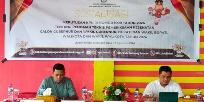 KORDINAT.ID – Komisi Pemilihan Umum (KPU) Kabupaten Bolaang Mongondow Selatan (Bolsel) menggelar sosialisasi terkait Keputusan KPU RI Nomor 1090 Tahun 2024, bertempat di Queen Resto, Desa Sondana, Jumat 9 Agustus 2024.