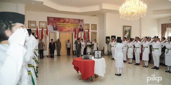 KORDINAT.ID – Pj. Bupati dr. Jusnan Mokoginta mengukuhkan Pasukan Pengibar Bendera Pusaka (Paskibraka) Bolaang Mongondow (Bolmong), Kamis 15 Agustus 2024.
