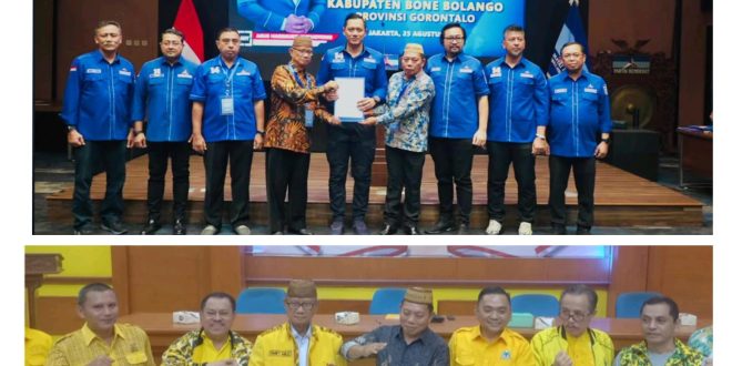 KORDINAT.ID – Pasangan Calon Bupati dan Wakil Bupati Bone Bolango, Ismet Mile dan Risman Tolingguhu secara resmi menerima surat DPP Partai Golkar Model B. Persetujuan. Parpol. KWK.